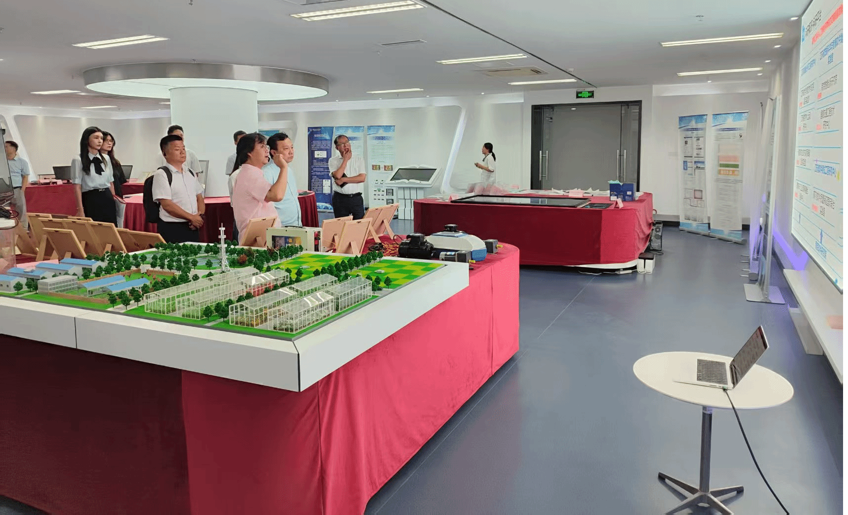 高建等一行人首先参观了南京软件研究院展示大厅和江苏省人工智能交通创新应用工程研究中心,现场查看我校在软件研发、智能交通领域的科研成果实物与应用案例,对我校近年来紧密对接地方产业需求、持续产出实用型科技成果的成效表示认可。